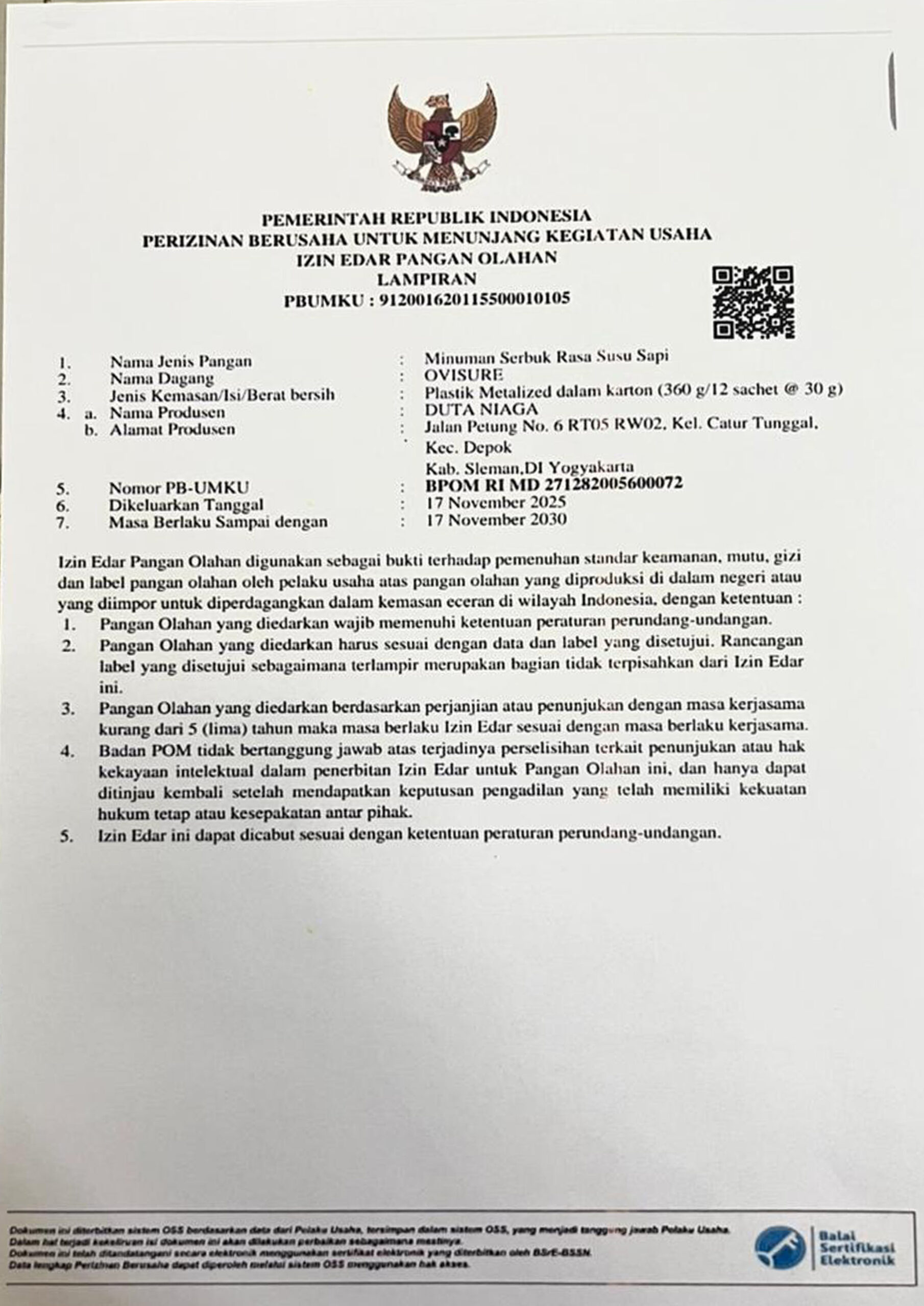 Ovisure Gold mengandung bahan kedelai berkualitas tinggi yang diimpor dari Amerika Serikat, disuling sesuai standar internasional.
